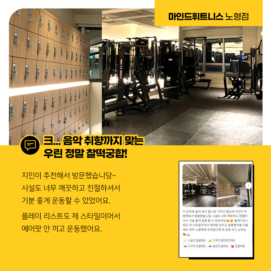 마음이 진심이 되어 전심이 되는 휘트니스, 질 좋은 운동 · 제대로 된 운동효과를 마인드휘트니스 노형점에서 얻어 보시는 건 어떠신가요? |